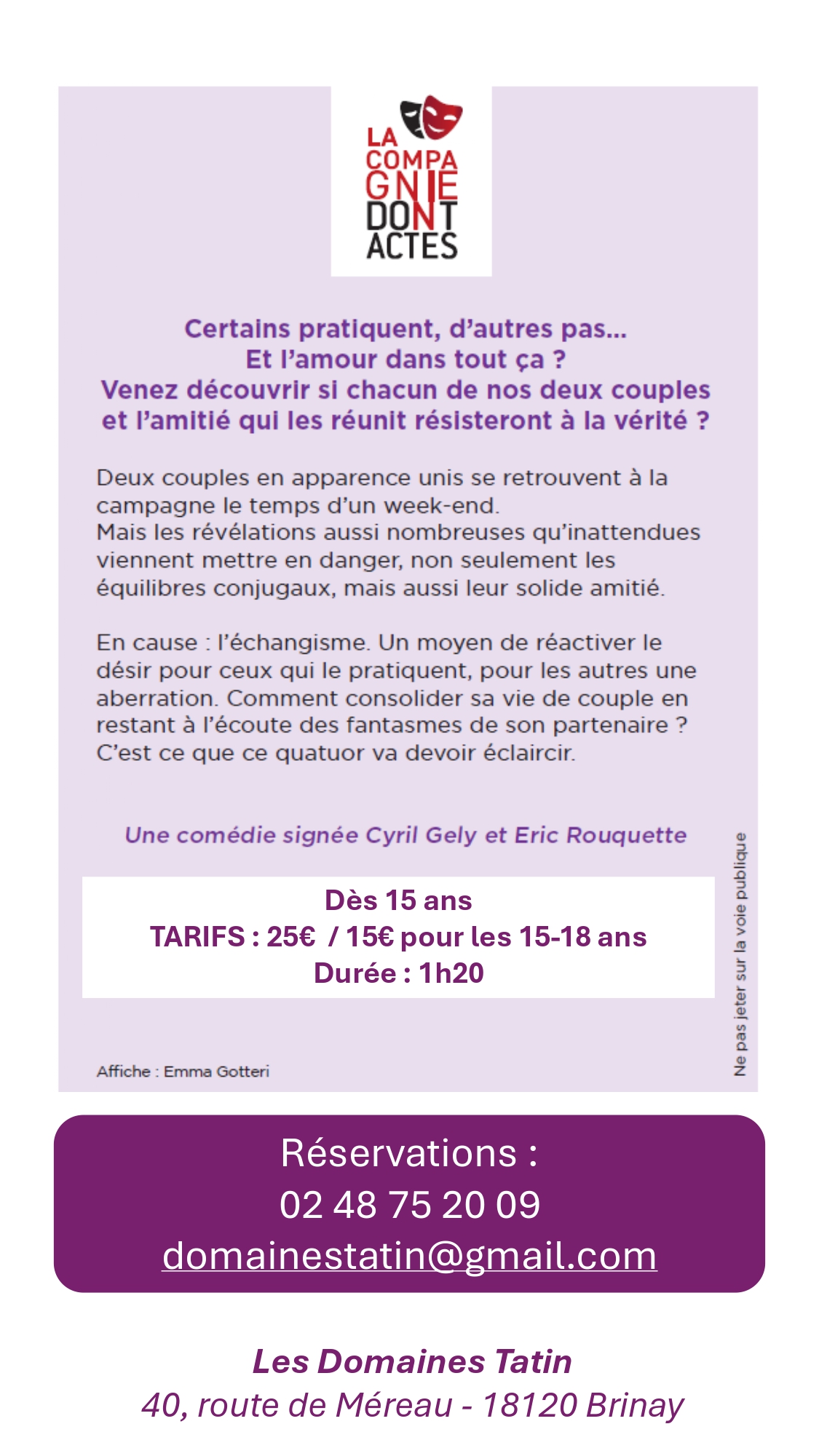 Samedi 28 mars 2026 : Théâtre en Kav' aux Domaines Tatin à Brinay